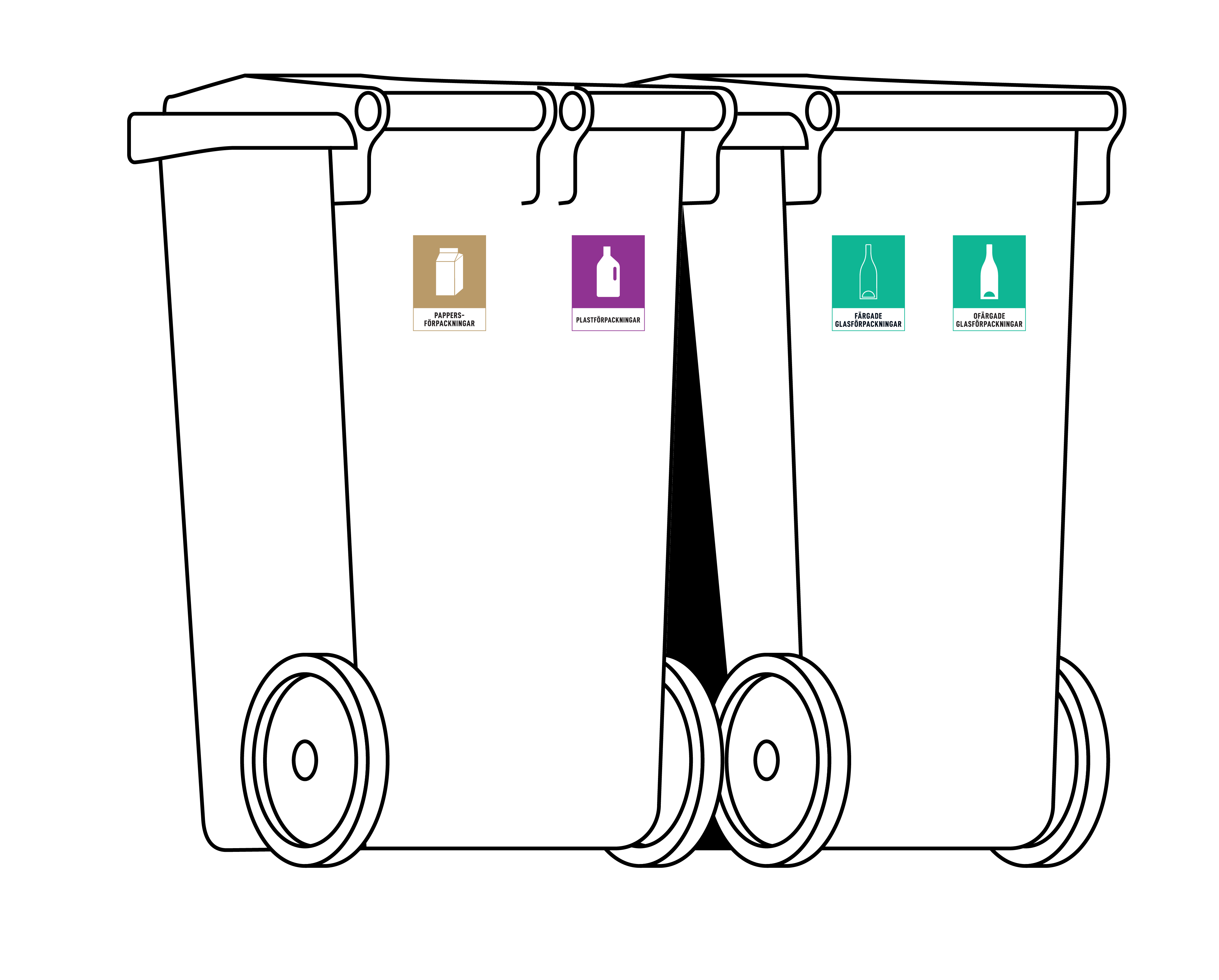 - Kärl för förpackningar av färgat glas och ofärgat glas samt en mindre behållare för metallförpackningar.